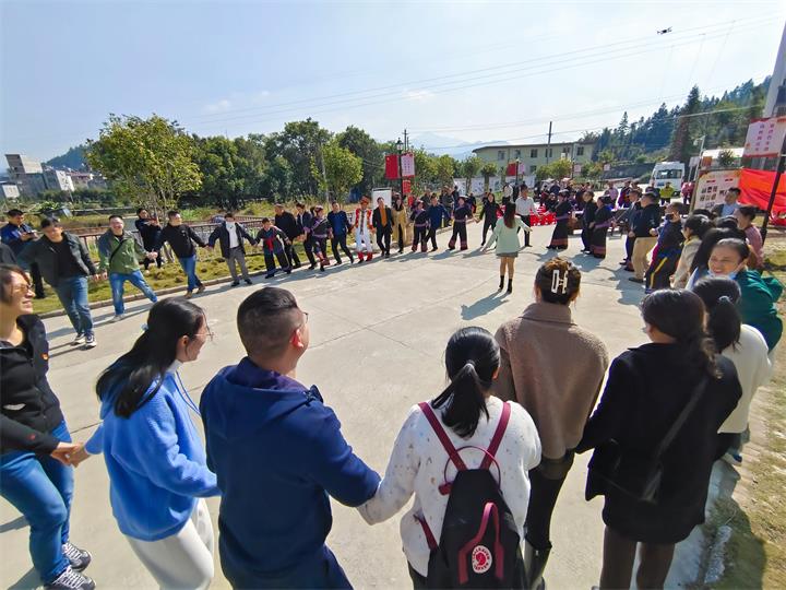 手牽手、心連心,民族團(tuán)結(jié)齊奮進(jìn)。在活動(dòng)中,南鄉(xiāng)壯族山歌隊(duì)為大家演唱了古樸的壯族特色歌曲《歡迎朋友到壯鄉(xiāng)來(lái)》和《南鄉(xiāng)歡迎您》,讓大家充分感受到壯鄉(xiāng)人民獨(dú)特的文化魅力與熱情純樸的民俗風(fēng)情。隨后,全體黨員與鄉(xiāng)民一同開(kāi)展紅色歌曲大家唱活動(dòng),攜手齊唱《唱支山歌給黨聽(tīng)》,共同跳起《愛(ài)我中華》民族團(tuán)結(jié)手勢(shì)舞蹈,并體驗(yàn)了壯族特色的投擲繡球等民俗文化活動(dòng),讓大家感受到了各民族相聚在一起,共敘民族團(tuán)結(jié)之情的良好氛圍。